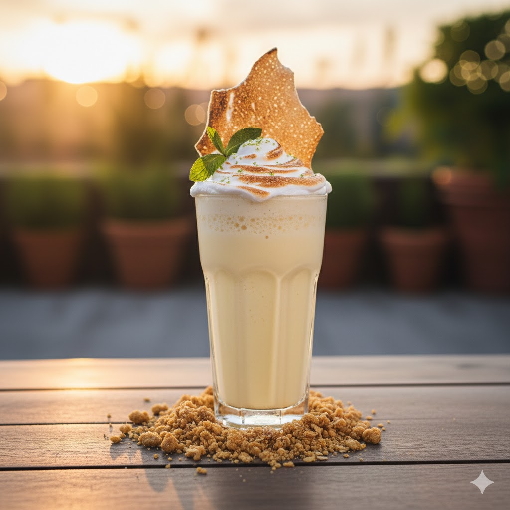 Crema de limón, granita de hierbabuena, crumble de avena helado de vainilla y teja de merengue